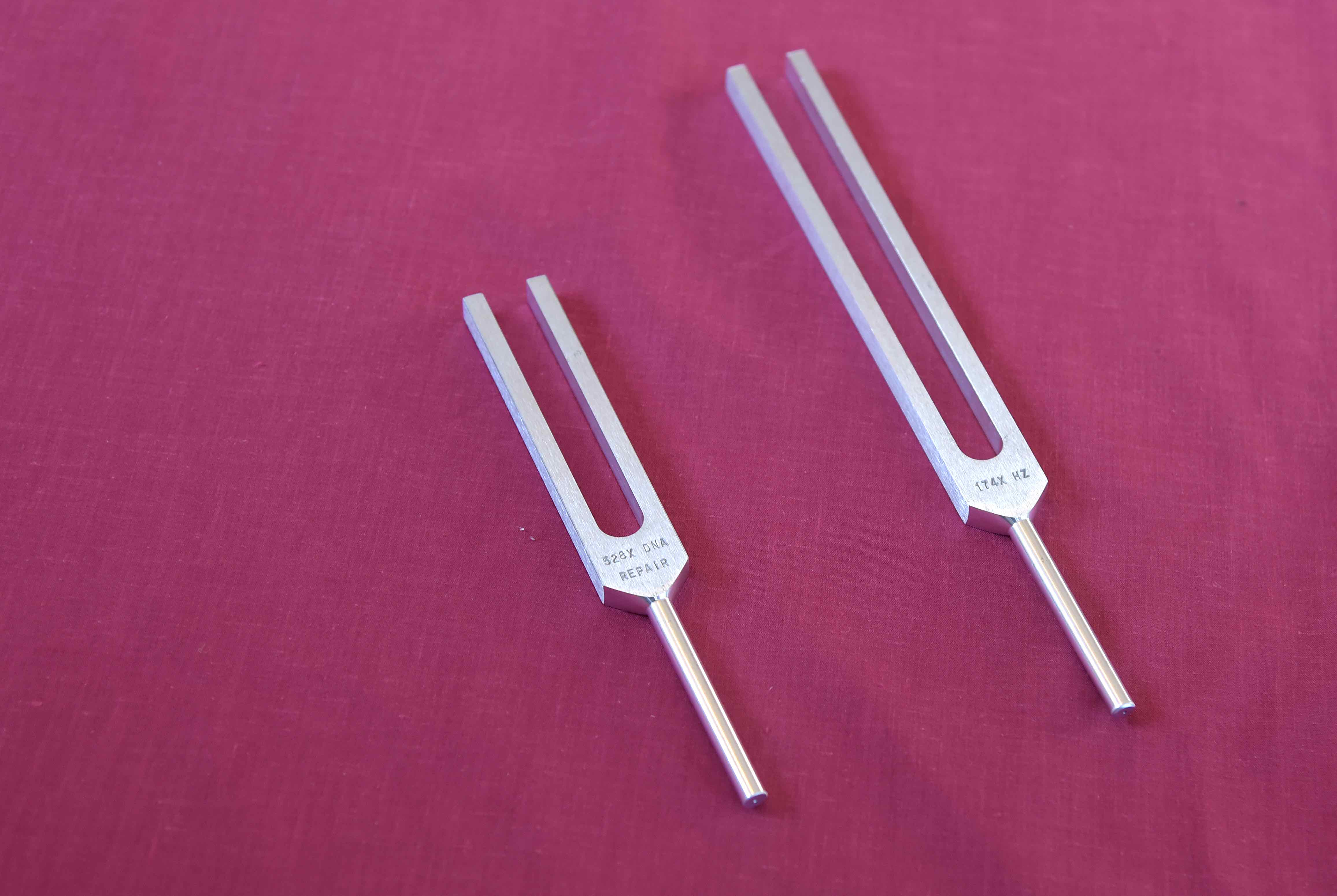 - how to work with 2 unweighted tuning forks off the body in the aura / biofield and close to the ears
