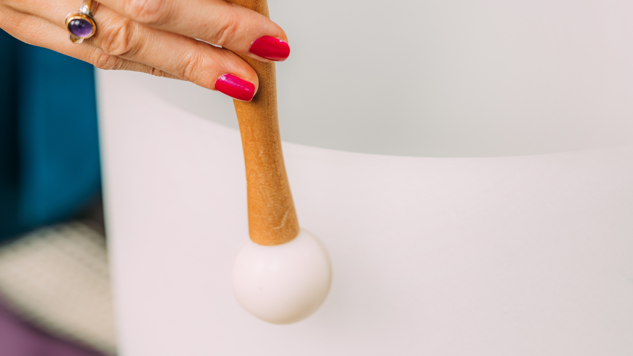 - Create your space – Find a quiet spot where you won’t be disturbed. Dim the lights, light a candle if you like, and sit comfortably. Hold your crystal singing bowl nearby.